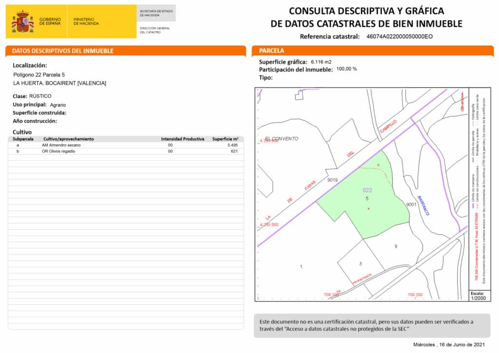12.072 m2 a la venta en partida solana de Bocairent no dispone de luz ni agua. PRECIO: 50.000€